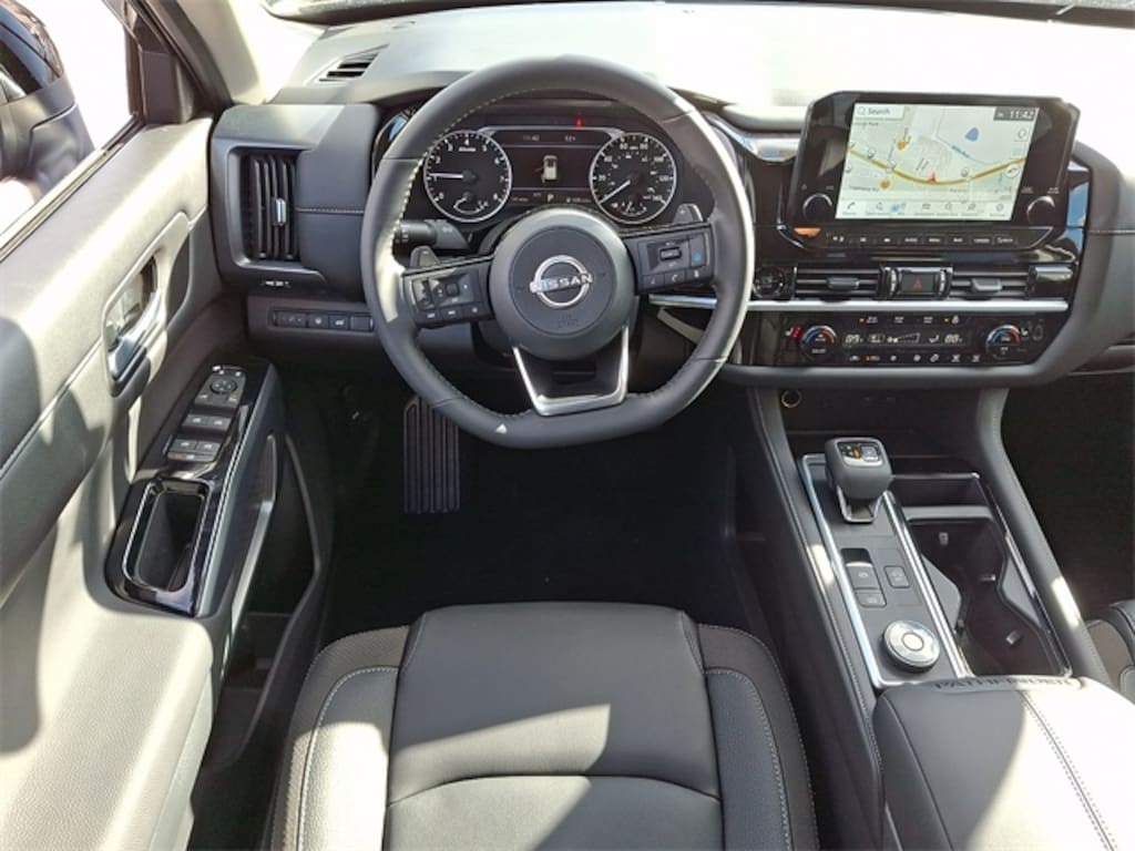 Pathfinder SL, 4D Sport Utility, 3.5L V6 DOHC, 9-Speed Automatic, 4WD, Super Black, Charcoal Leather, Black Grille, Black Liftgate Emblems, Bumpers: body-color, Navigation system: NissanConnect with Navigation and Services, NissanConnect with Navigation and Services, Wheels: 18" x 8J Machined Alloy. 4D Sport Utility 2025 Nissan Pathfinder SL SL Super Black