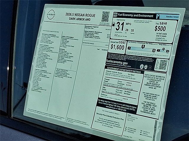 Heated Steering Wheel, Leatherette Door Trim Inserts with Stitch, Panoramic Moonroof, Prima-Tex Leatherette Seat Trim, Rear Door Sunshades, Rear Personal Lights, Silver Painted Roof Rails, SV Premium Package. 4D Sport Utility 2026 Nissan Rogue Gun Metallic